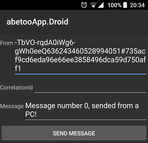 abcn.sendMessage(remoteChannel, "Message sent from Android!");